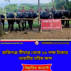 জকিগঞ্জ সীমান্ত থেকে ১৮ লক্ষ টাকার ভারতীয় মহিষ জব্দ
